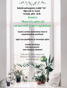 Radošās pašizaugsmes studijā «Tev» iecavā, Rīgas ielā 23, 16. maijā plkst. 18 domnīca «Mazo lietu spēks ceļā uz sava iekšējā miera saglabāšanu».