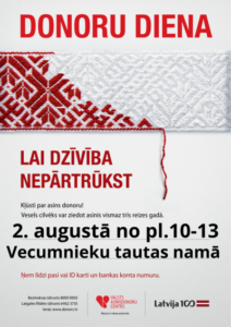Vecumnieku tautas namā 2. augustā no plkst. 10 līdz 13 Donoru diena.