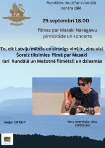 Rundāles multifunkcionālā centra zālē 29. septembrī plkst. 18 filmas par Masaki Nakagavu pirmizrāde un koncerts.