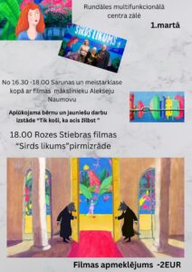 Rundāles multifunkcionālā centra zālē 1. martā no plkst. 16.30 līdz 18 sarunas un meistarklase kopā ar Rozes Stiebras filmas «Sirds likums» mākslinieku Alekseju Naumovu.