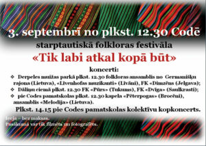 Codē 3. septembrī no plkst. 12.30 starptautiskā folkloras festivāla «Tik labi atkal kopā būt» koncerti: