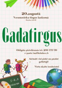 Vecumnieku tirgus laukumā 20. augustā plkst. 8 gadatirgus.