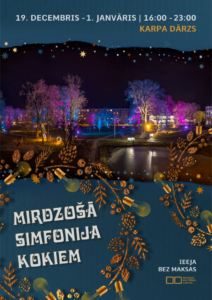 Bauskā, Karpa dārzā, no 19. decembra līdz 1. janvārim no plkst. 16 līdz 23 gaismas instalācija «Mirdzošā simfonija kokiem».