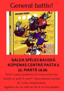 Bauskas kopienas centrā «Pasta 5» 22. martā plkst. 18 galda spēļu vakars.
