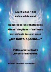 Valles saieta namā 9. aprīlī plkst. 18 amatierteātra «Briedīši» priekšnesums «Uz balta spārna».