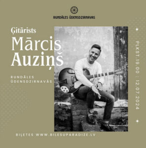 Rundāles ūdensdzirnavās 12. jūlijā plkst. 19 ģitārista Mārča Auziņa koncerts.