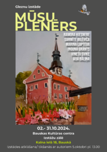 Bauskas Kultūras centrā 5. oktobrī plkst. 13 gleznu izstādes «Mūsu plenērs» atklāšana un tikšanās ar tajā eksponēto darbu autoriem. Izstāde būs skatāma līdz mēneša beigām – 31. oktobrim.