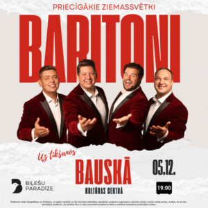 Bauskas Kultūras centrā 5. decembrī plkst. 19 grupas «Baritoni» koncerts «Priecīgākie Ziemassvētki».