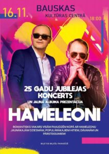 Bauskas kultūras centrā 16. novembrī plkst. 18 grupas «Hameleoni» 25 gadu jubilejas koncerts un jaunā albuma prezentācija.