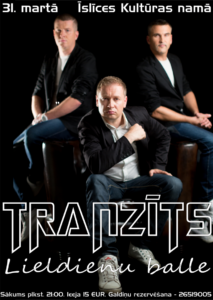 Īslīces kultūras namā 31. martā plkst 21 grupas «Tranzīts» Lieldienu balle.