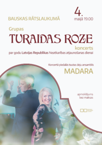 Bauskas Rātslaukumā 4. maijā plkst. 19 grupas «Turaidas roze» koncerts par godu Latvijas Republikas Neatkarības atjaunošanas dienai.