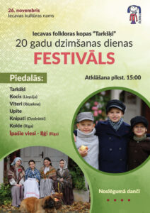 Iecavas kultūras namā 26. novembrī plkst. 15 Iecavas folkloras kopas «Tarkšķi» 20 gadu dzimšanas dienas festivāls.