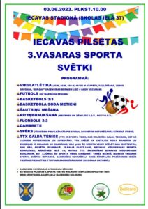 Iecavas stadionā 3. jūnijā plkst. 10 Iecavas pilsētas 3. vasaras sporta svētki.