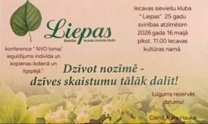 Iecavas kultūras namā 16. maijā plkst. 11 Iecavas sieviešu kluba «Liepas» 25 gadu svinības: konference «NVO loma/ieguldījums indivīda un kopienas ikdienā un ilgspējā» «Dzīvot nozīmē – dzīves skaistumu tālāk dalīt!»