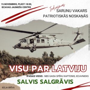 Iecavas jauniešu centrā 15. novembrī plkst. 18 iedvesmas sarunu vakars ar NBS Gaisa spēku kapteini Salvi Salgrāvi.