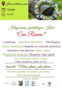 Īslīces kultūras namā 18. jūnijā plkst. 11 ielīgošanas gadatirgus «Čau, Rasma!»: