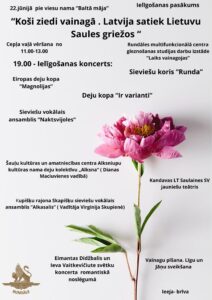 Pie viesu nama «Baltā māja» 22. jūnijā ielīgošanas pasākums «Koži ziedi vainagā. Latvija satiek Lietuvu Saulgriežos»: no plkst. 11 līdz 13 cepļa vaļā vēršana, plkst. 19 – ielīgošanas koncerts. Piedalās Eiropas deju kopa «Magnolijas», sieviešu koris «Runda», deju kopa «Ir varianti», sieviešu vokālais ansamblis «Naktsvijoles», Šauļu kultūras un amatniecības centra Alksniupu kultūras nama deju kolektīvs «Alksna» (Dianas Maciuvienes vadībā), Kandavas LT Saulaines struktūrvienības jauniešu teātris, Kupišķu rajona Skapišķu sieviešu vokālais ansamblis «Alkasalis» (vadītāja Virginija Skupiene),