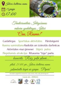 Īslīces kultūras namā 15. jūnijā plkst. 17 tradicionālais ielīgošanas vakara gadatirgus «Čau, Rasma!»: gadaqtirgus, sportiskas aktivitātes, pārsteigumi, Rasmu sumināšana, radošās un izzinošās darbnīcas, aktivitātes visai ģimenei, striprā putra, piepūšamās atrakcijas, Rītausmu «Līgo» parks, koncerts «Reiz zaļā pļavā…»; plkst. 21 zaļumballe kopā ar grupu «Pipari».