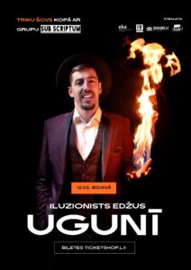 Iecavas kultūras namā 12. septembrī plkst. 19 iluzionista Edžus šovs «Ugunī».