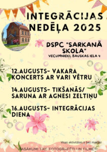 Vecumniekos, daudzfunkcionālajā sociālo pakalpojumu centrā «Sarkanā skola» integrācijas nedēļa: 12. augustā plkst. 18 vakara koncerts ar Vari Vētru, 14. augustā – rikšanās un saruna ar Agnesi Zeltiņu, 16. augustā integr;acijas diena.