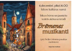 Īslīces kultūras namā 6. decembrī plkst. 16 Īslīces bērnu un jauniešu teātra izrāde «Brēmenes muzikanti».
