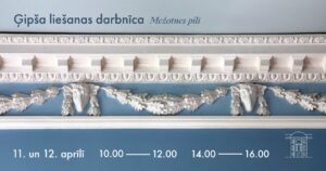 Mežotnes pilī 11. un 12. aprīlī no plkst. 10 līdz 12 un no 14 līdz 16 izglītojoša nodarbība par ģipša izmantošanu pils restaurācijā. Divu stundu darbnīcā dalībniekiem būs iespēja izgatavot vienu ģipša atlējumu (zaķi, vardi, ozollapu, puķi u.c.) un iepazīt procesu no ģipša iejaukšanas un liešanas līdz slīpēšanai, gruntēšanai un krāsošanai.