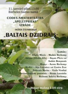 Bārbeles tautas namā 11. janvārī plkst. 13 Codes amatierteātra «Spēlētprieks» izrāde «Baltais dzidrais».