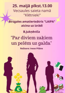 Vecsaules saieta namā «Klētnieki» 25. maijā plkst. 13 izrāde «Par diviem zaķiem un pelēm uz galda».