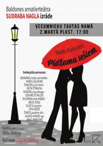 Vecumnieku tautas namā 2. martā plkst. 17 Baldones amatierteātra «Sudraba nagla» izrāde «Pidžama sešiem».