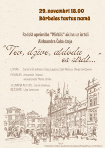 Bārbeles tautas namā 29. novembrī plkst. 18 radošā apvienība «Mirklis» aicina uz izrādi «Tev, dzīve, atdodu es sirdi…» – Aleksandra Čaka dzeja.