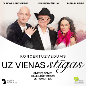 Bauskas kultūras centrā 15. aprīlī plkst. 19 Jānis Paukštello, Ineta Rudzīte un Gundars Grasbergs koncertuzvedumā «Uz vienas stīgas».
