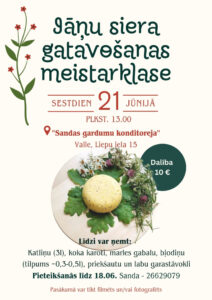 Valles pagastā, konditorejā «Sandras gardumi», 21. jūnijā plkst. 13 Jāņu siera gatavošanas meistarklase.