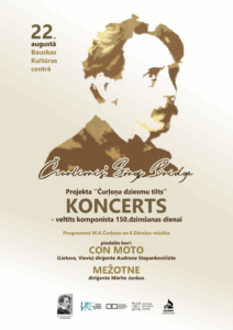 Bauskas Kultūras centrā 22. augustā plkst. 18 jauktā kora «Conmoto» un jauktā kora «Mežotne» koncerts, veltījums komponista M. Čurļoņa 150. dzimšanas dienai.
