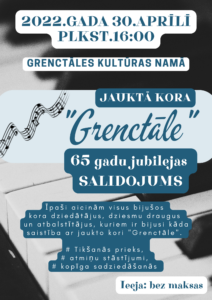 Grenctāles kultūras namā 30. aprīlī plkst. 16 jauktā kora «Grenctāle» 65 gadu jubilejas salidojums.