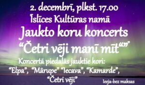 Īslīces kultūras namā 2. decembrī plkst. 17 jaukto koru koncerts «Četri vēji manī mīt».