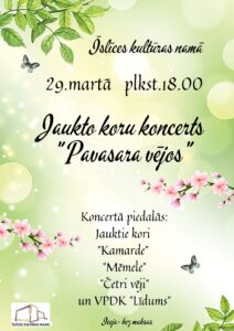 Īslīces kultūras namā 29. martā plkst. 18 jaukto koru koncerts «Pavasara vējos».