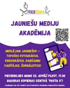 Bauskas kopienas centrā «Pasta 5» 23. aprīlī plkst. 17.30 Jauniešu mediju akadēmijas 1. nodarbība.