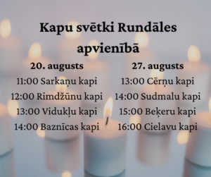 27. augustā plkst. 13 Cērņu kapos, plkst. 14 – Sudmalu kapos, plkst. 15 Beķeru kapos, plkst. 16 – Cielavu kapos.