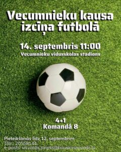 Vecumnieku vidusskolas sporta laukumā 14. septembrī plkst. 11 kausa izcīņa futbolā.