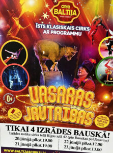 Cirka teltī Bauskā, Rīgas ielā 42 (laukumā aiz Bauskas peldbaseina), 20. un 21. jūnijā plkst. 19, 22. jūnijā plkst. 17 un 23. jūnijā plkst. 13 īsts klasiskais cirks ar programmu «Vasaras jautrības».