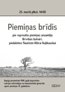 Bauskā, Brīvības bulvārī, pie represēto piemiņas ansambļa 25. martā plkst. 14 komunistiskā genocīda upuru piemiņas brīdis.