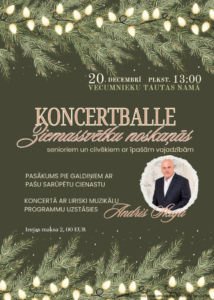 Vecumnieku tautas namā 20. decembrī plkst. 13 koncertballe «Ziemassvētku noskaņās» senioriem un cilvēkiem ar īpašām vajadzībām.