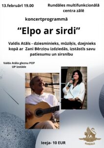 Rundāles multifunkcionālā centra zālē 13. februārī plkst. 19 koncertprogramma «Elpo ar sirdi».