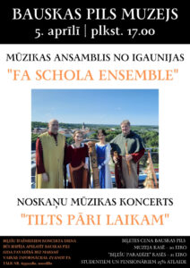 Bauskas pilī 5. aprīlī plkst. 17 koncertprogramma «Tilts pāri laikam» ar ansambli «FA Schola Ensemble».