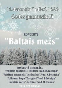 Codes pamatskolā 11. decembrī plkst.16 koncerts «Baltais mežs».