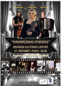 Bauskas kultūras centrā 17. oktobrī plkst. 18 koncertciklā «Dzimuši Bauskai» koncerts «Kinomūzikas epizodes» – Mareks Radzevičs, Katrina Fabriciusa, Inita Āboliņa.