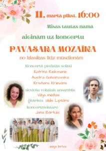 11. martā plkst. 16 koncerts «Pavasara mozaīka» no klasikas līdz mūsdienām.
