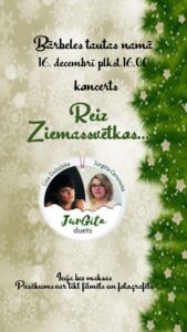 Bārbeles tautas namā 16. decembrī plkst. 16 koncerts «Reiz Ziemassvētkos». Duets Jurgita – Gita Dukaļska un Jurgita Červinska.