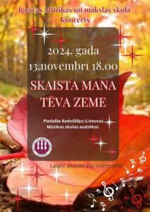 Iecavas Mūzikas un mākslas skolā 13. novembrī plkst. 18 koncerts «Skaista mana tēva zeme».