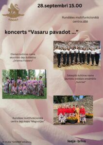 Rundāles multifunkcionālā centra zālē 28. septembrī plkst. 15 koncerts «Vasaru pavadot».